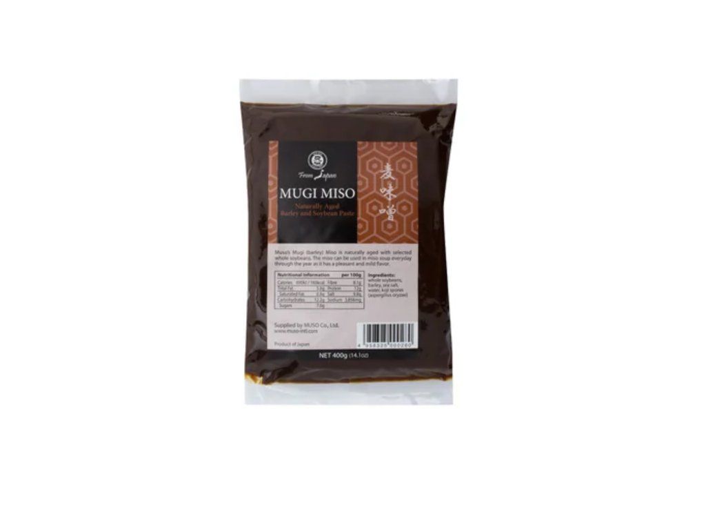 Muso Miso Mugi je tradiční japonská miso pasta vyrobená z ječmene a sójových bobů. Díky delší fermentaci má výraznější chuť než miso z bílé rýže. Po celá staletí se vyrábí tak, že se vybrané sójové boby zatěžkají kamenem a fermentují se v cedrových soudcích. Mugi miso je středně hnědé miso ze sóji a ječmene, fermentované přibližně rok. Je ideální do polévek, omáček, marinád a k dochucení nejrůznějších pokrmů, které vyžadují intenzivnější aroma.