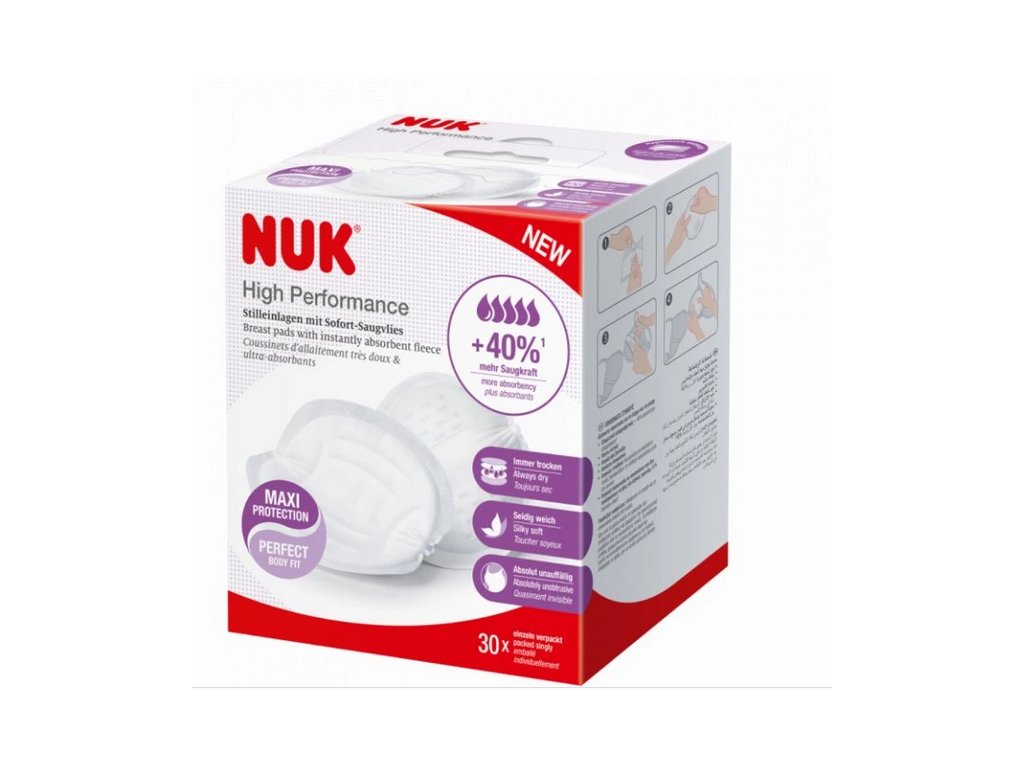 Nové vysoce účinné prsní vložky NUK mají zcela nově vyvinutou fleecovou vrstvu s okamžitou absorpcí, obsahující mikrokuličky, které mají o 40 % vyšší absorpci* a spolehlivě zadržují tekutinu. Fleece se speciální vnitřní strukturou zajistí optimální absorpci a distribuci tekutiny. Díky svému anatomickému 3D tvaru prsní vložky NUK dobře padnou a jejich hedvábně hladký prodyšný materiál příjemně přilne k pokožce.